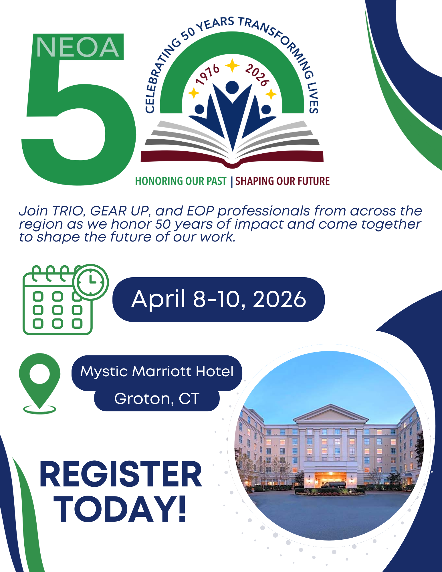 • April 8-10, 2026 at the Mystic Marriott Hotel in Groton, CT.